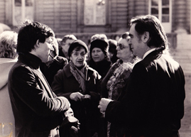 1979, Denis Lefebvre avec Claude Fuzier dans la cour du Sénat